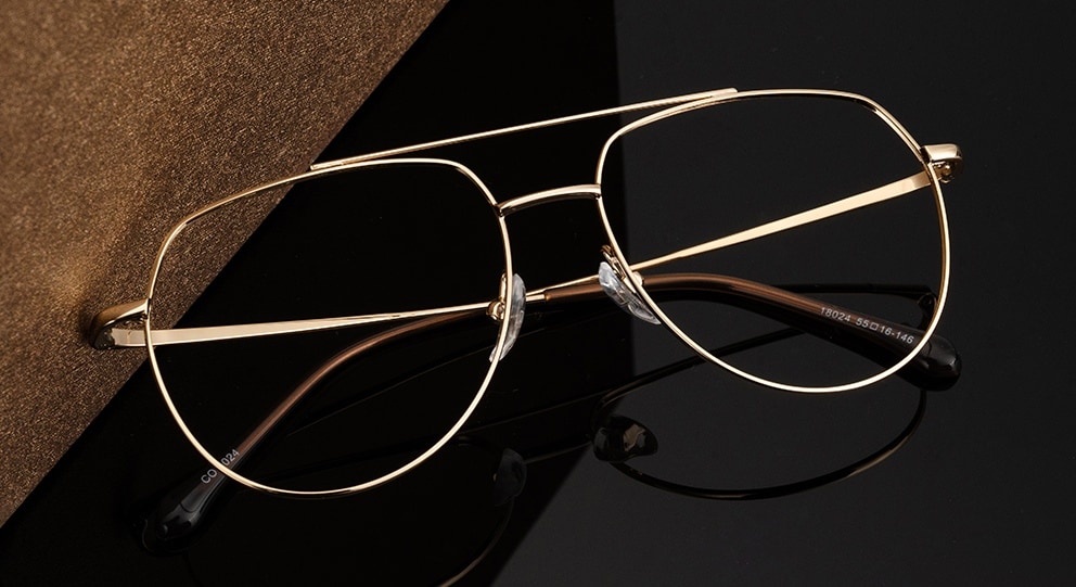 Shine with gold glasses and sunglasses, from classic aviators to black-and-gold or rose gold styles. Perfect for warm and olive skin tones with brown, hazel, or green eyes, gold frames pair beautifully with dark brown, auburn, or black hair. Explore rimless, cat eye, and clear-and-gold designs for a radiant look.